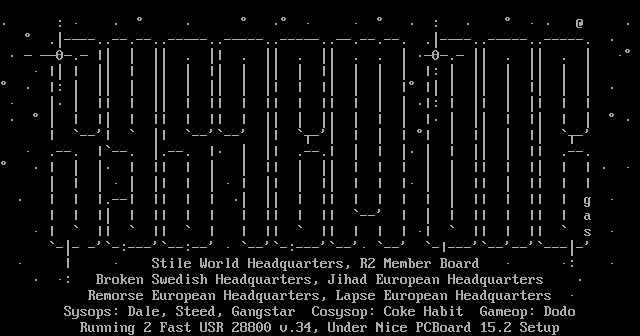 Sysops: Dale, Steed, Gangstar Cosysop: Coke Habit Gameop: Dodo