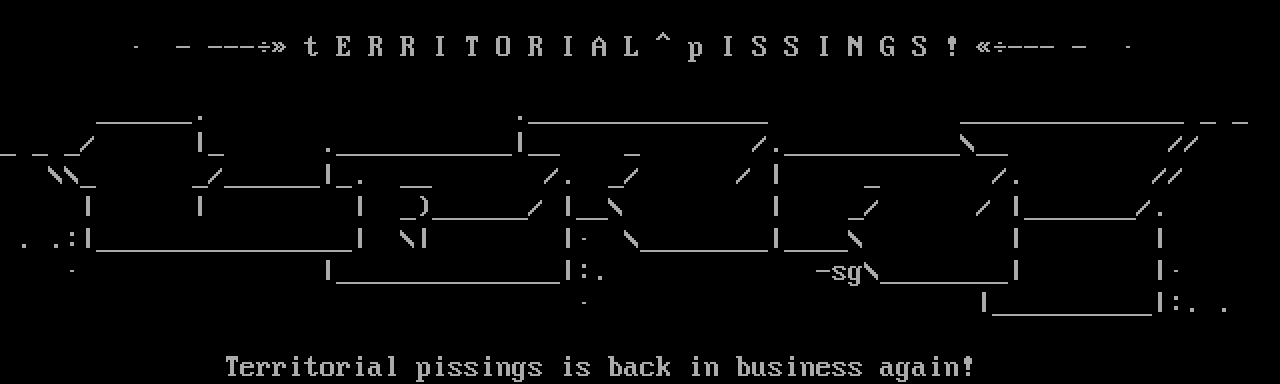 - --- t E R R I T O R I A L p I S S I N G S ! --- -