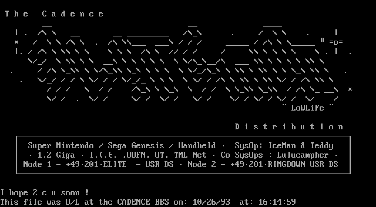 This file was U/L at the CADENCE BBS on: 10/26/93 at: 16:14:59