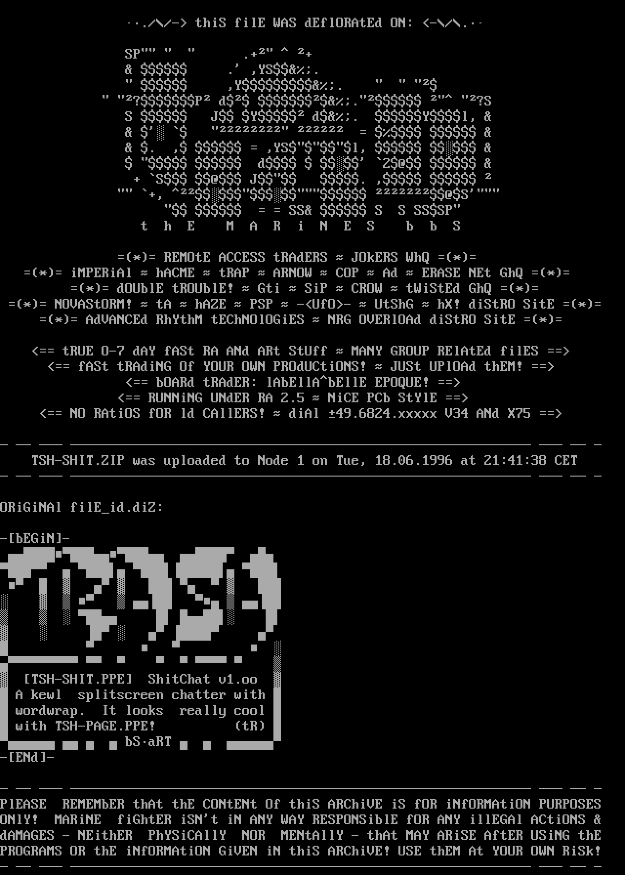 TSH-SHIT.ZIP was uploaded to Node 1 on Tue, 18.06.1996 at 21:41:38 CET