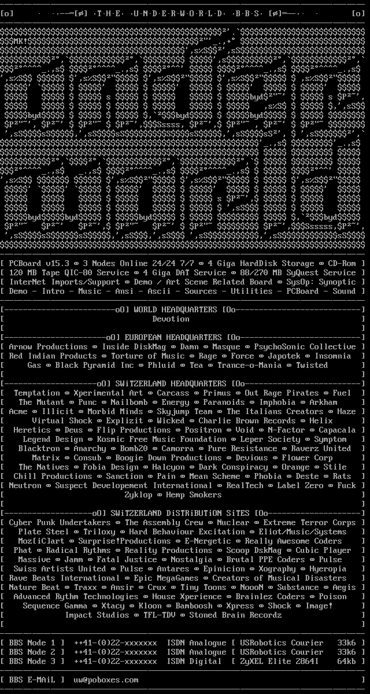 BBS Node 1 ++41-022-xxxxxxx ISDN Analogue USRobotics Courier 33k6