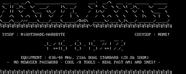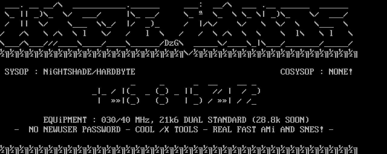 SYSOP : NiGHTSHADE/HARDBYTE COSYSOP : NONE!