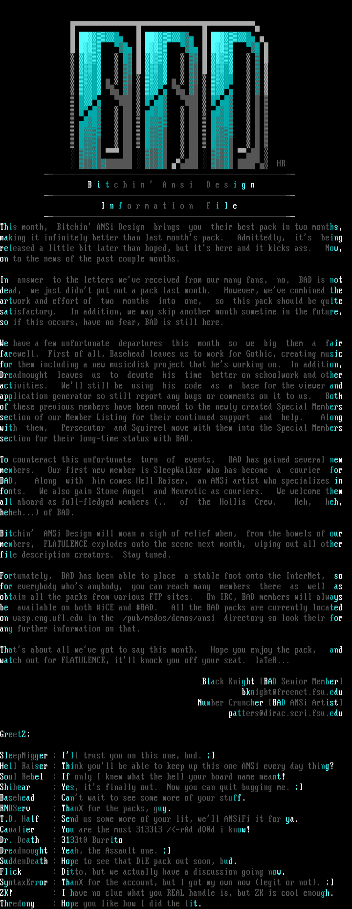 BAD. Along with him comes Hell Raiser, an ANSi artist who specializes in