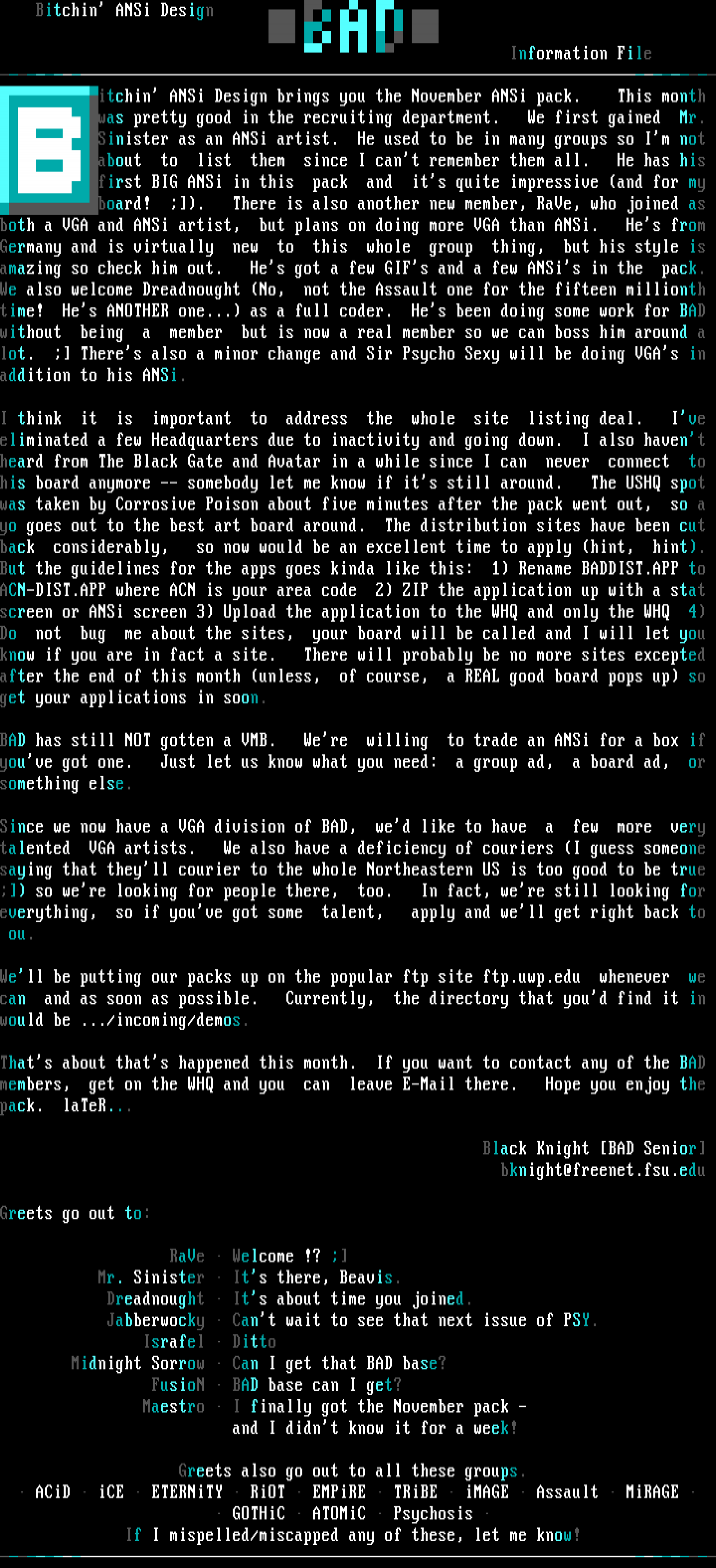 both a VGA and ANSi artist, but plans on doing more VGA than ANSi. Hes from