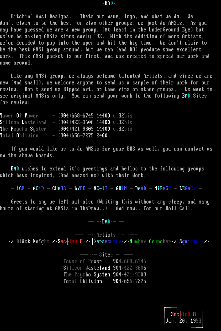 Bitchin Ansi Designs.. Thats our name, logo, and what we do. We