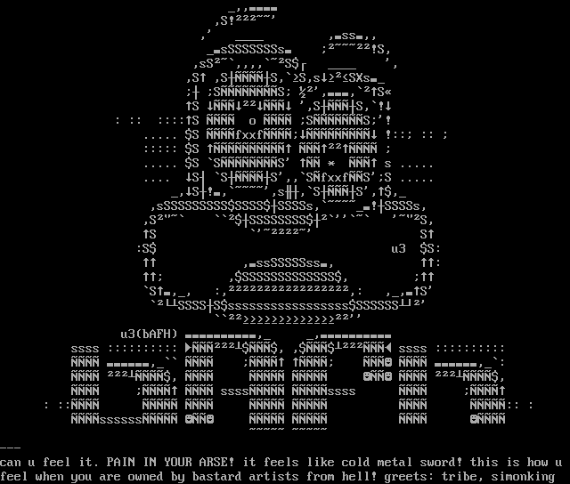 feel when you are owned by bastard artists from hell! greets: tribe, simonking
