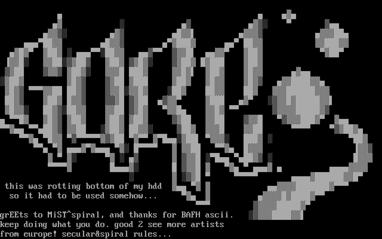 grEEts to MiSTspiral, and thanks for BAFH ascii.