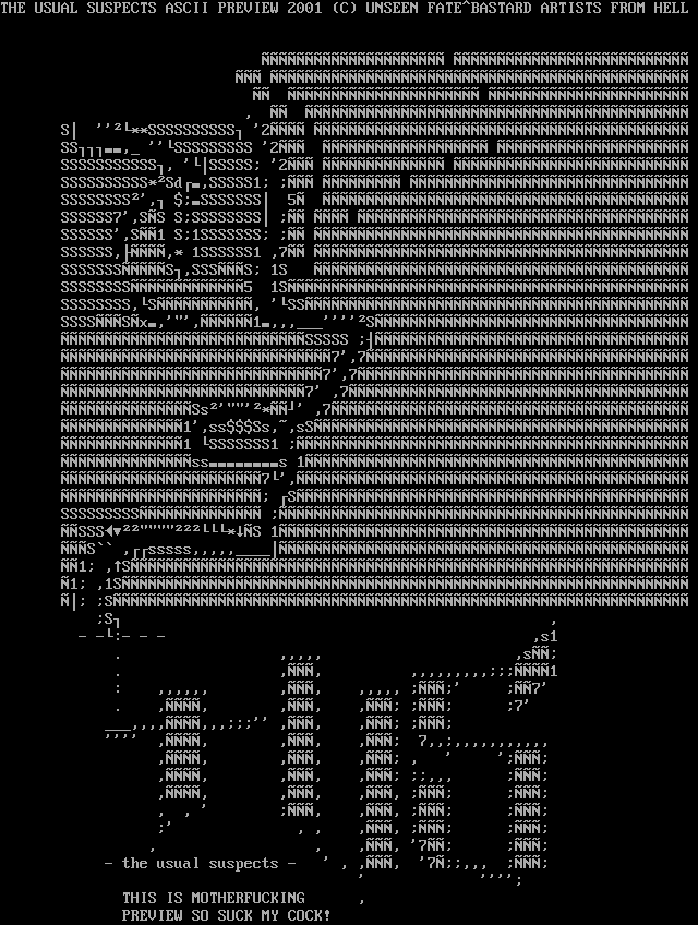 THE USUAL SUSPECTS ASCII PREVIEW 2001 C UNSEEN FATEBASTARD ARTISTS FROM HELL