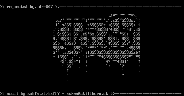ascii by zubfatal/bafh? - askee@stillborn.dk -----------------------------