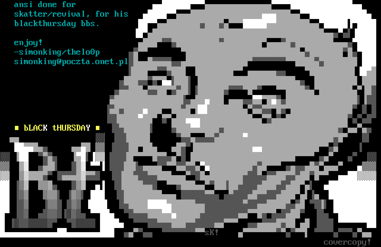 ansi done for skatter/revival, for his blackthursday bbs. enjoy!
