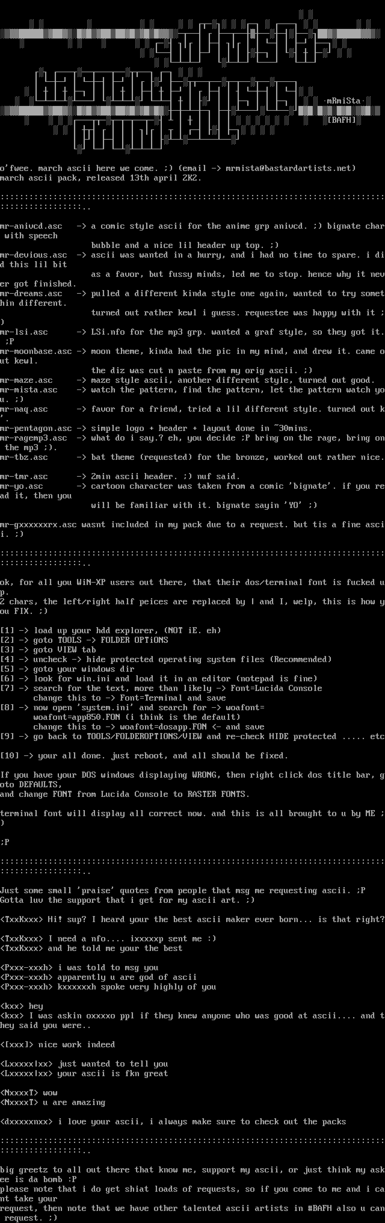 ofwee. march ascii here we come. email - mrmista@bastardartists.net