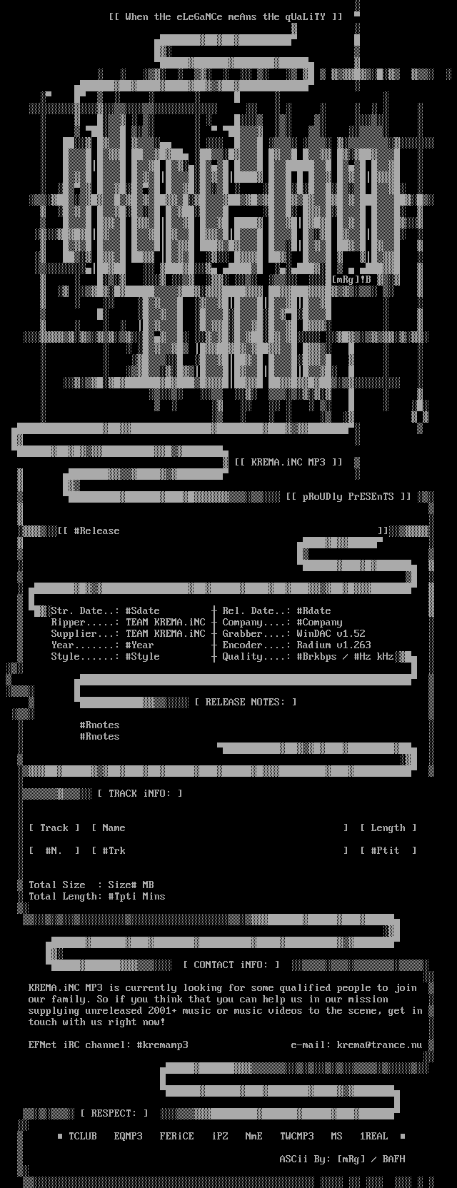 EFNet iRC channel: kremamp3 e-mail: krema@trance.nu