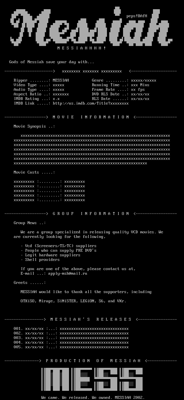 Ripper ........: MESSIAH Genre .........: xxxxx/xxxxx