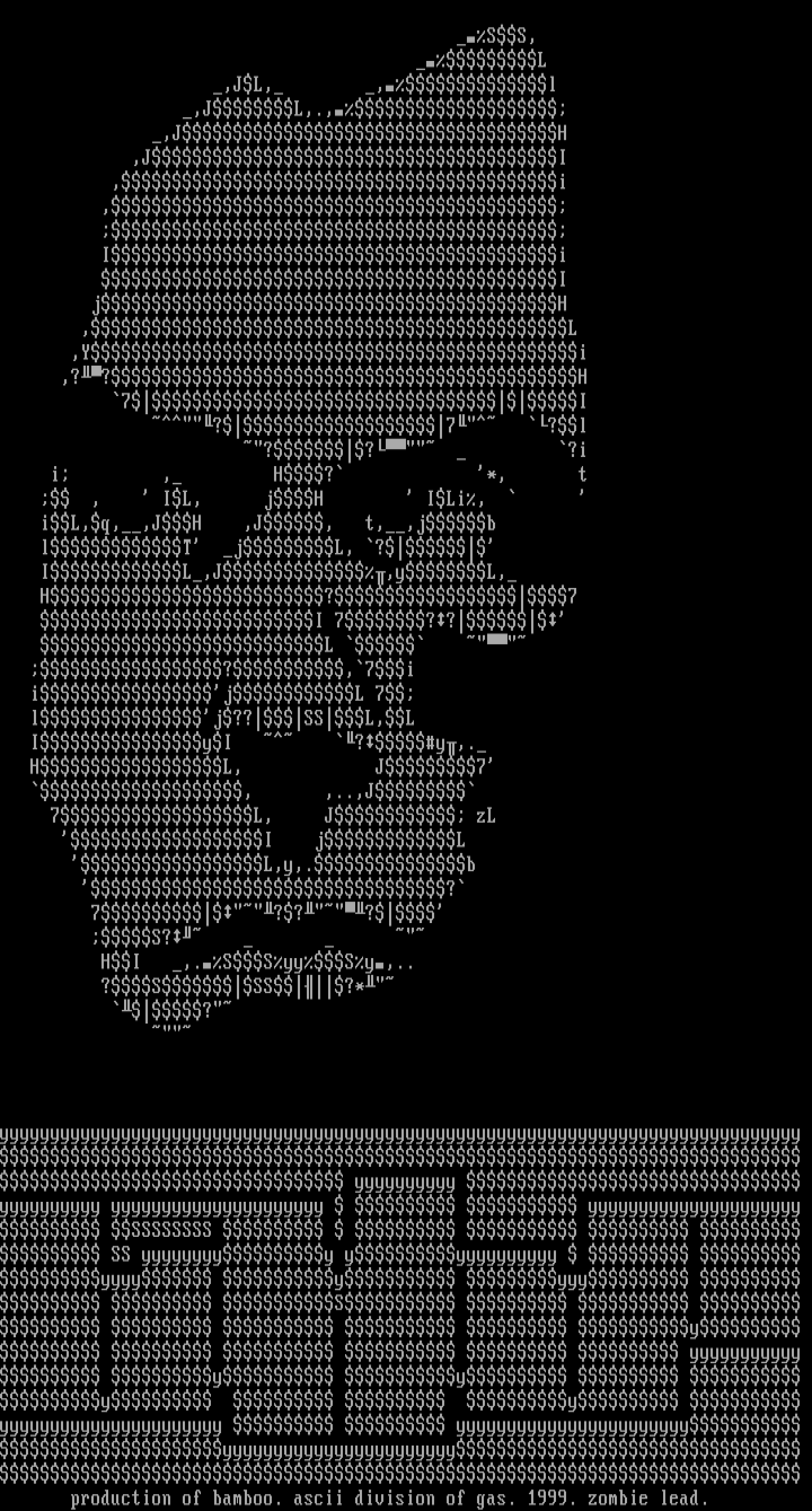 production of bamboo. ascii division of gas. 1999. zombie lead.