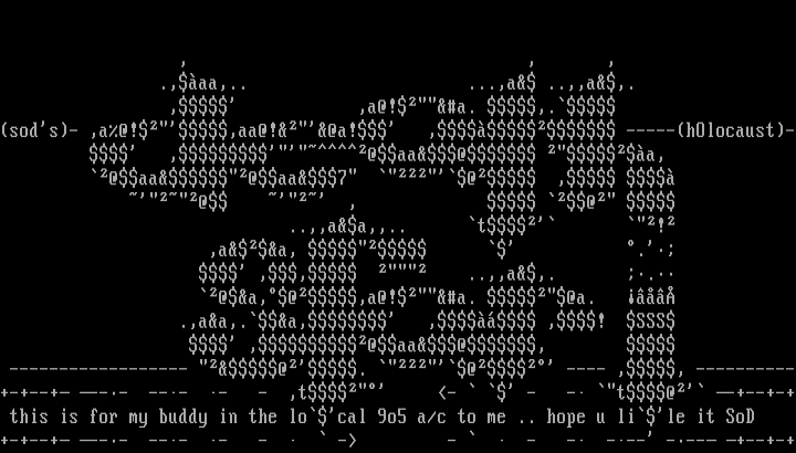 ------------------ @. @ ---- ,, ----------+-+--+ --- --- - - ,t - - - t@ -+--+-+ this is for my buddy in the local 9o5 a/c to me .. hope u lile it SoD