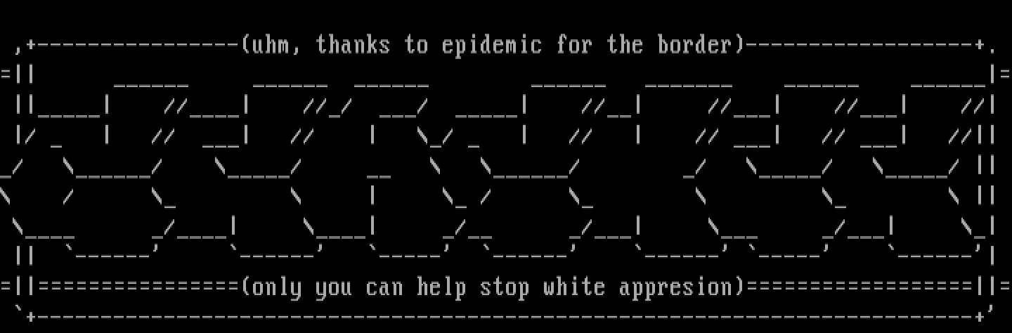 ,+----------------uhm, thanks to epidemic for the border------------------+.