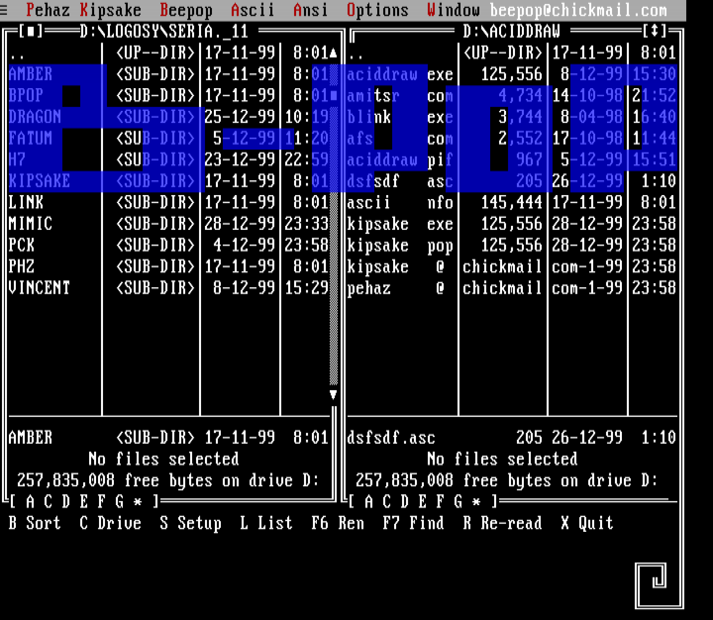 Pehaz Kipsake Beepop Ascii Ansi Options Window beepop@chickmail.com D:LOGOSYSERIA.11 D:ACIDDRAW