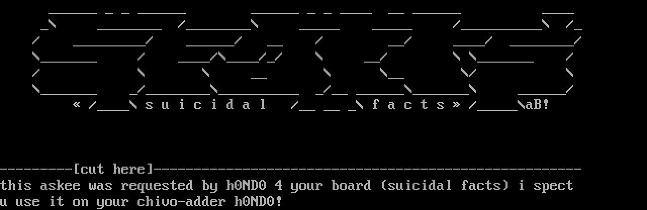 this askee was requested by h0ND0 4 your board suicidal facts i spect