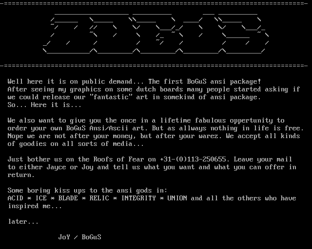 Well here it is on public demand... The first BoGuS ansi package!