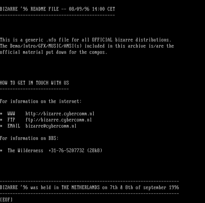 This is a generic .nfo file for all OFFICIAL bizarre distributions.