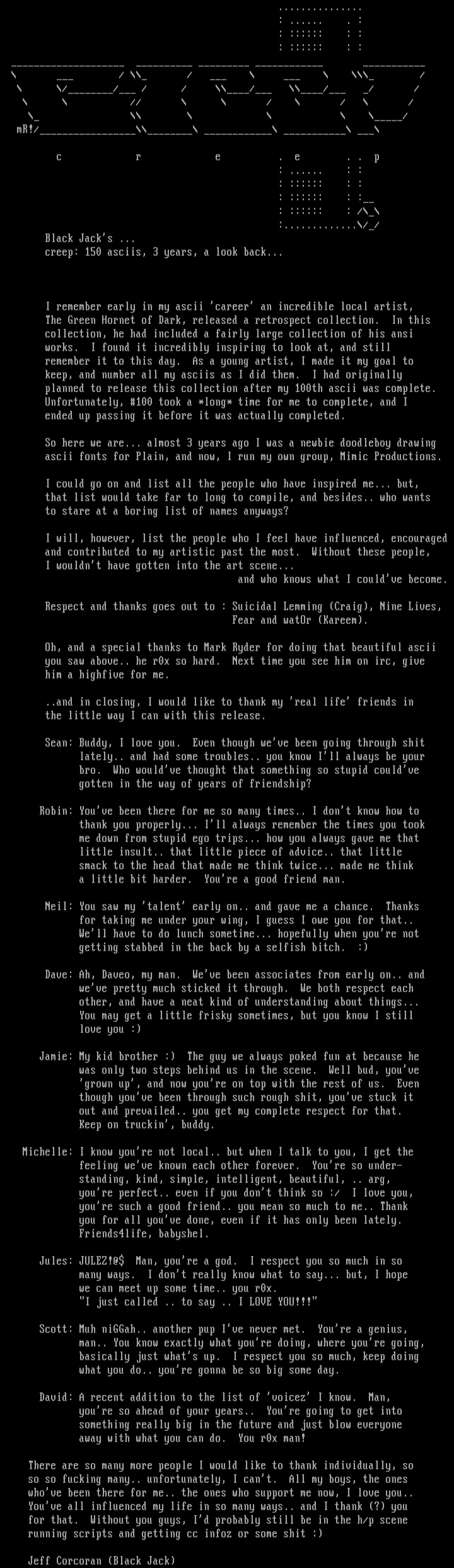 ascii fonts for Plain, and now, I run my own group, Mimic Productions.