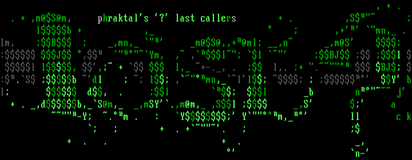 . + ,m@S@m, phraktals ? last callers + . ,S lb + , ,+ mn, .