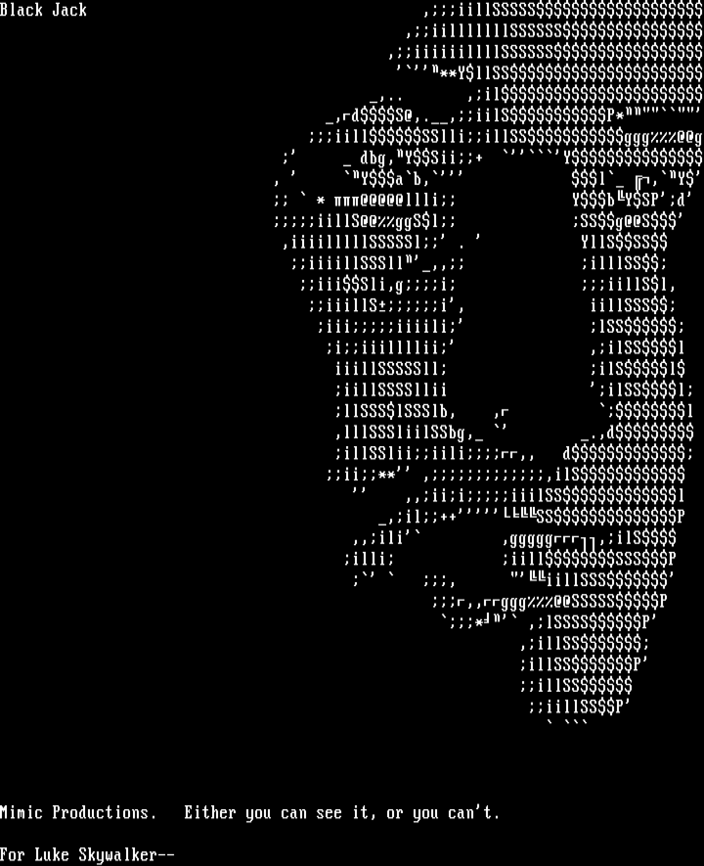 Black Jack ,iillSSSSS ,iilllllllSSSSSS ,iiiiiillllSSSSSS **YllSS ,.. ,il ,dS@,.,iilSP* iillSSlliillSSggg@@g dbg,YSii+ Y , Yab, l ,Y * @@@@@llli YbYSPd