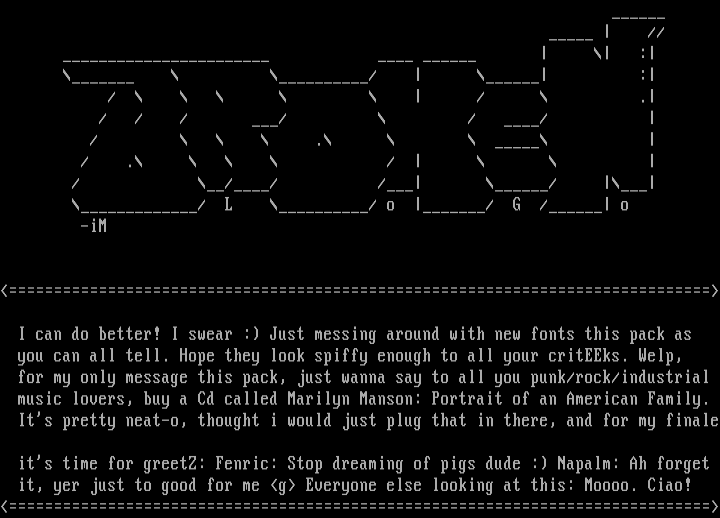 its time for greetZ: Fenric: Stop dreaming of pigs dude : Napalm: Ah forget