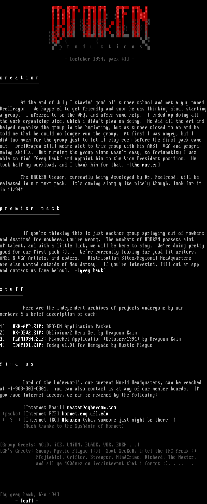 out. DrelDragon still means alot to this group with his ANSi, VGA and progra-