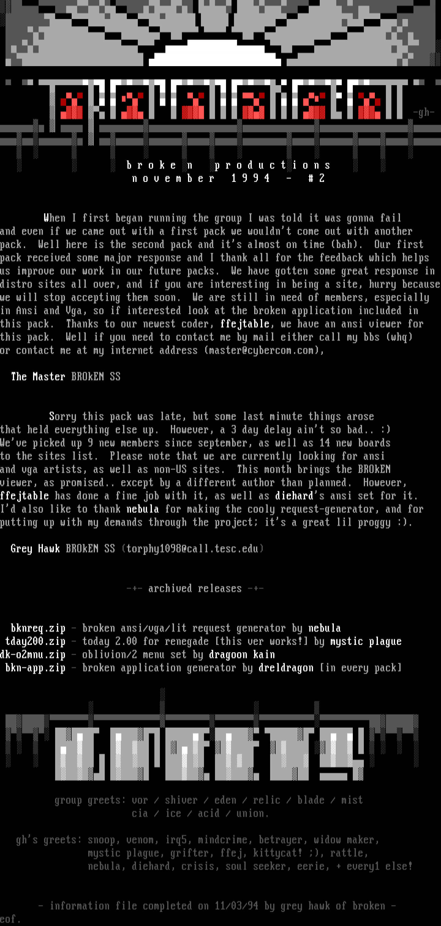 - information file completed on 11/03/94 by grey hawk of broken -