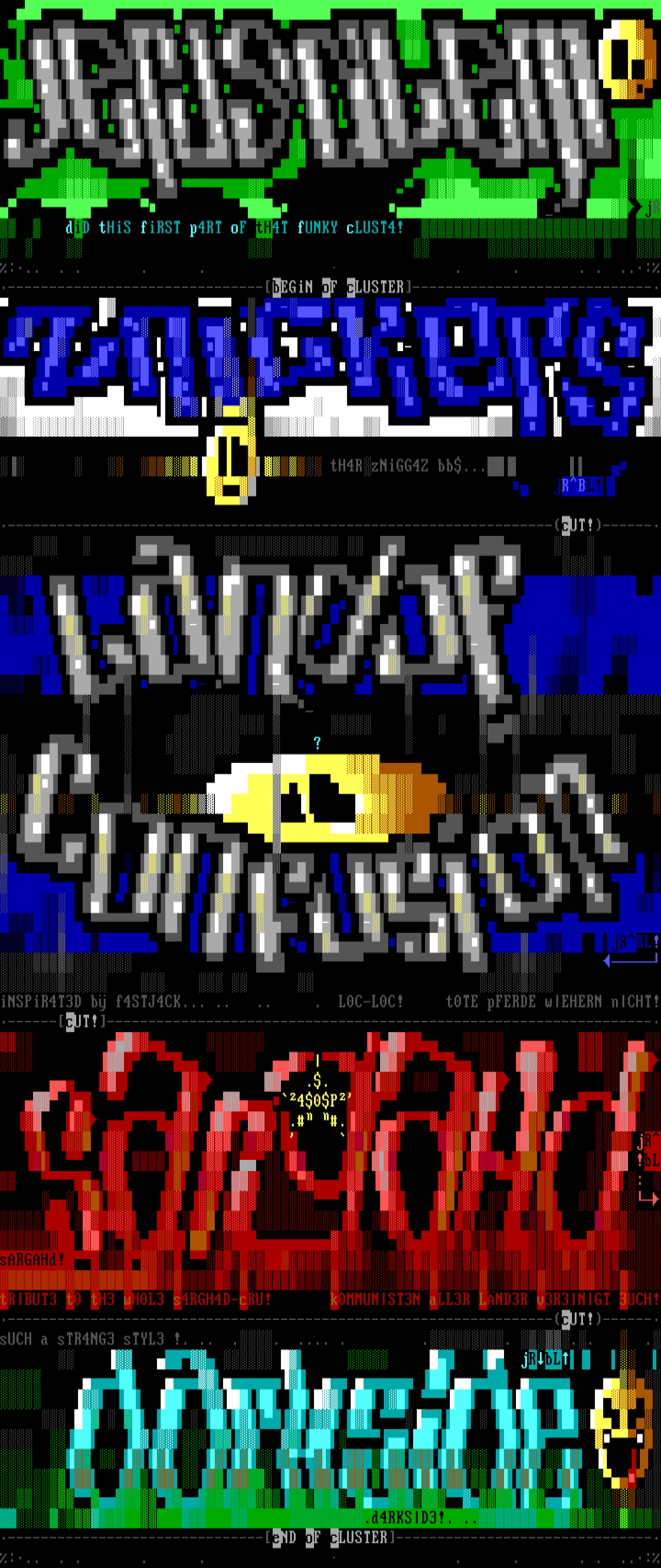 R diD tHiS fiRST p4RT oF tH4T fUNKY cLUST4! :.. . . . . . . . . ..:-------------------------------bEGiN oF cLUSTER----------------------------- - - -