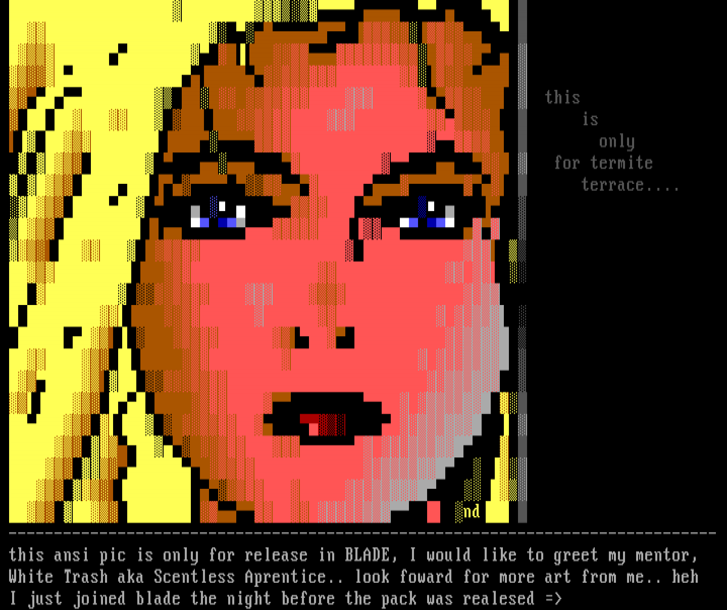 this ansi pic is only for release in BLADE, I would like to greet my mentor,
