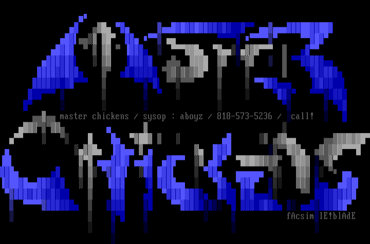 master chickens / sysop : aboyz / 818-573-5236 / call!