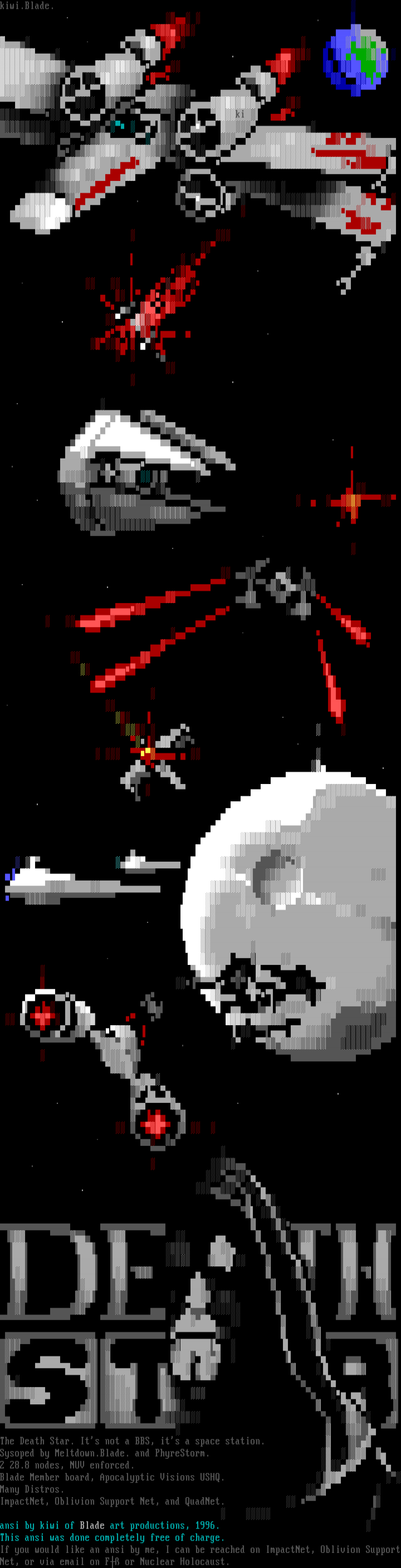 If you would like an ansi by me, I can be reached on ImpactNet, Oblivion SupportNet, or via email on F or Nuclear Holocaust.