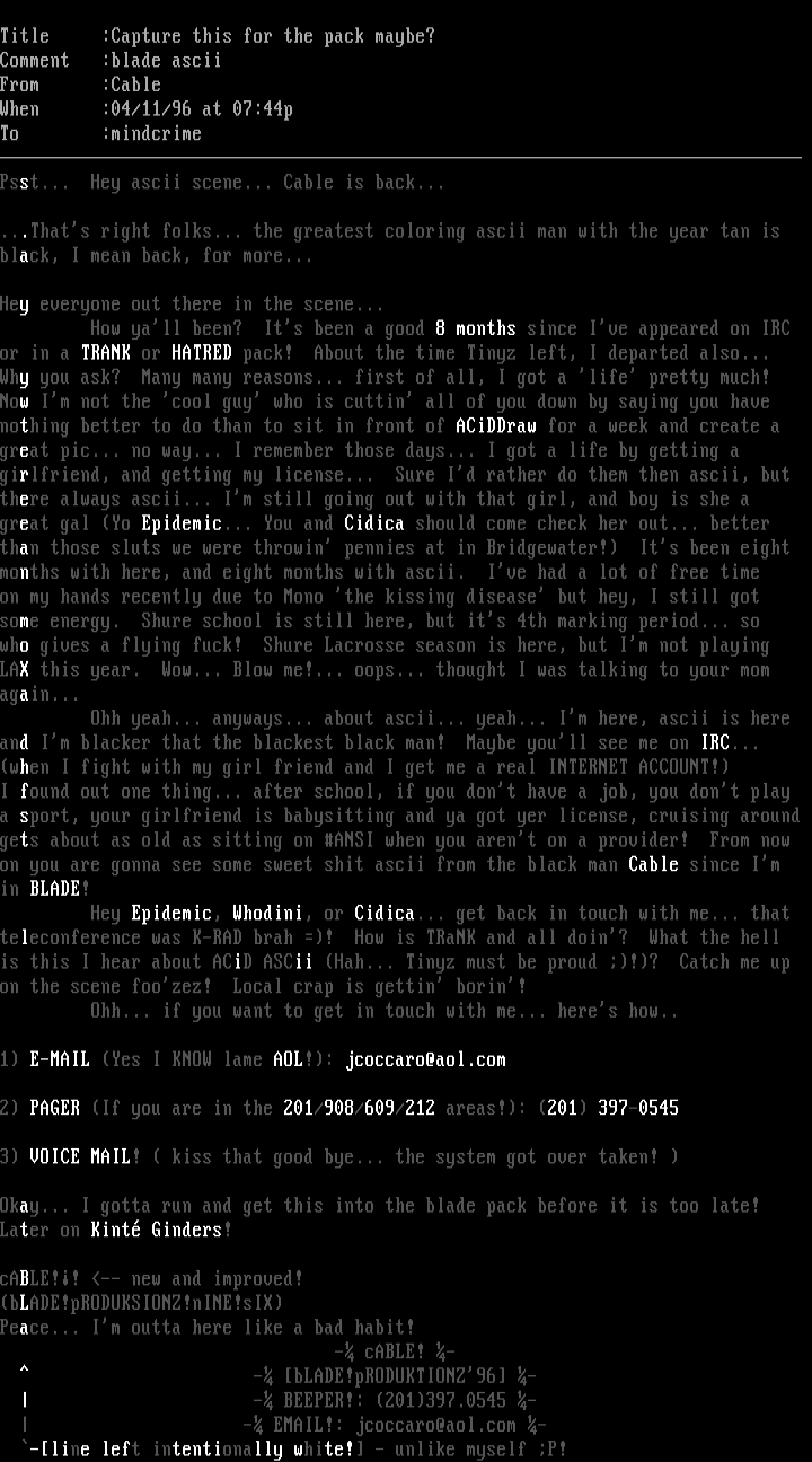 on you are gonna see some sweet shit ascii from the black man Cable since Im