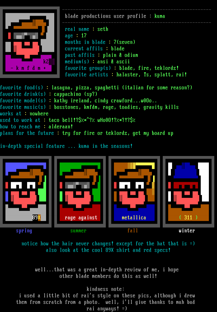 -k m f d m + favorite groups : blade, fire, teklordz!