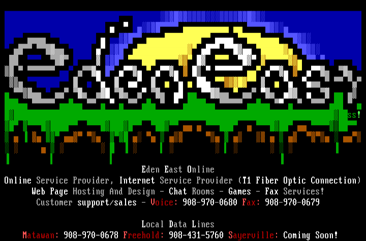 Eden East Online Online Service Provider, Internet Service Provider T1 Fiber Optic Connection Web Page Hosting And Design - Chat Rooms - Games - F