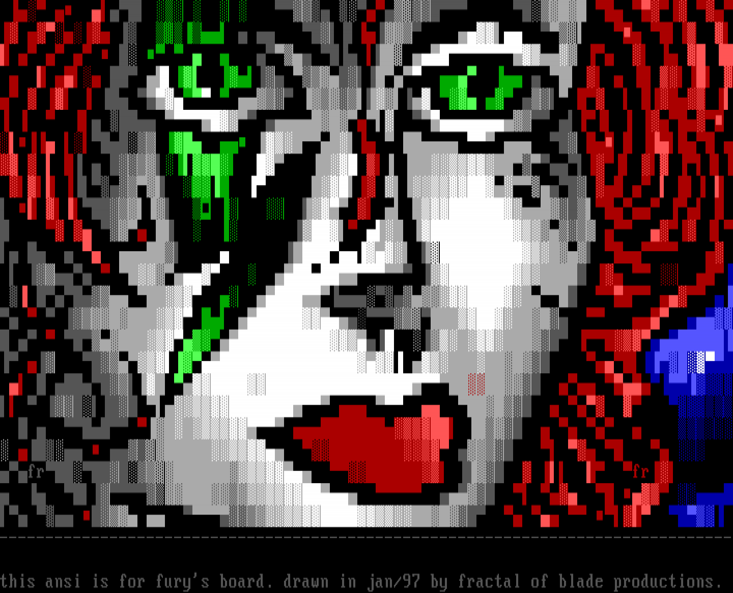 this ansi is for furys board. drawn in jan/97 by fractal of blade productions.