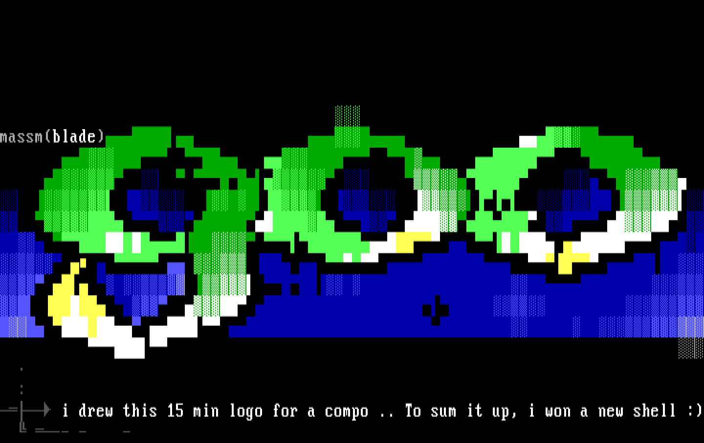 i drew this 15 min logo for a compo .. To sum it up, i won a new shell : -- - -