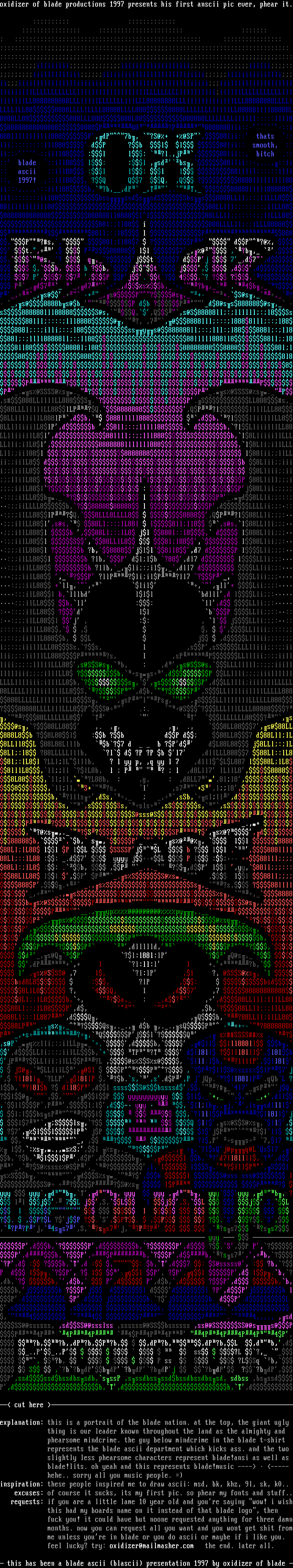 oxidizer of blade productions 1997 presents his first anscii pic ever, phear it.