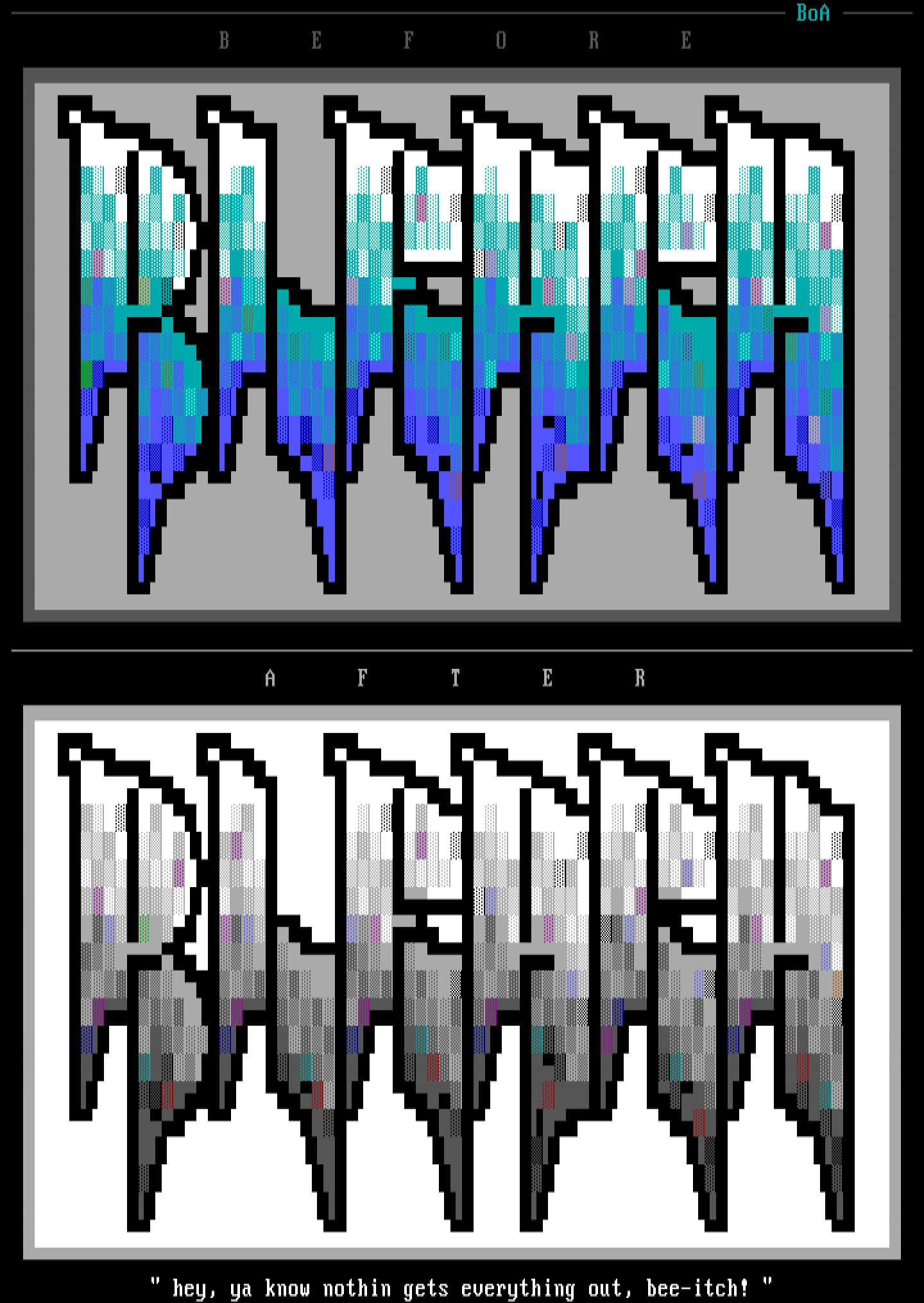 hey, ya know nothin gets everything out, bee-itch!