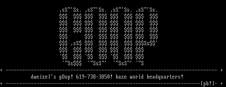 dweizels gOop! 619-738-3850! haze world headquarters!
