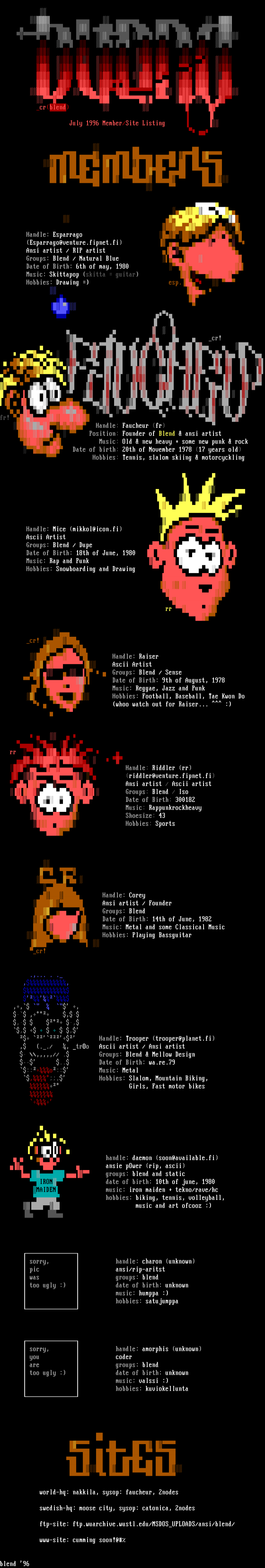 July 1996 Member/Site Listing