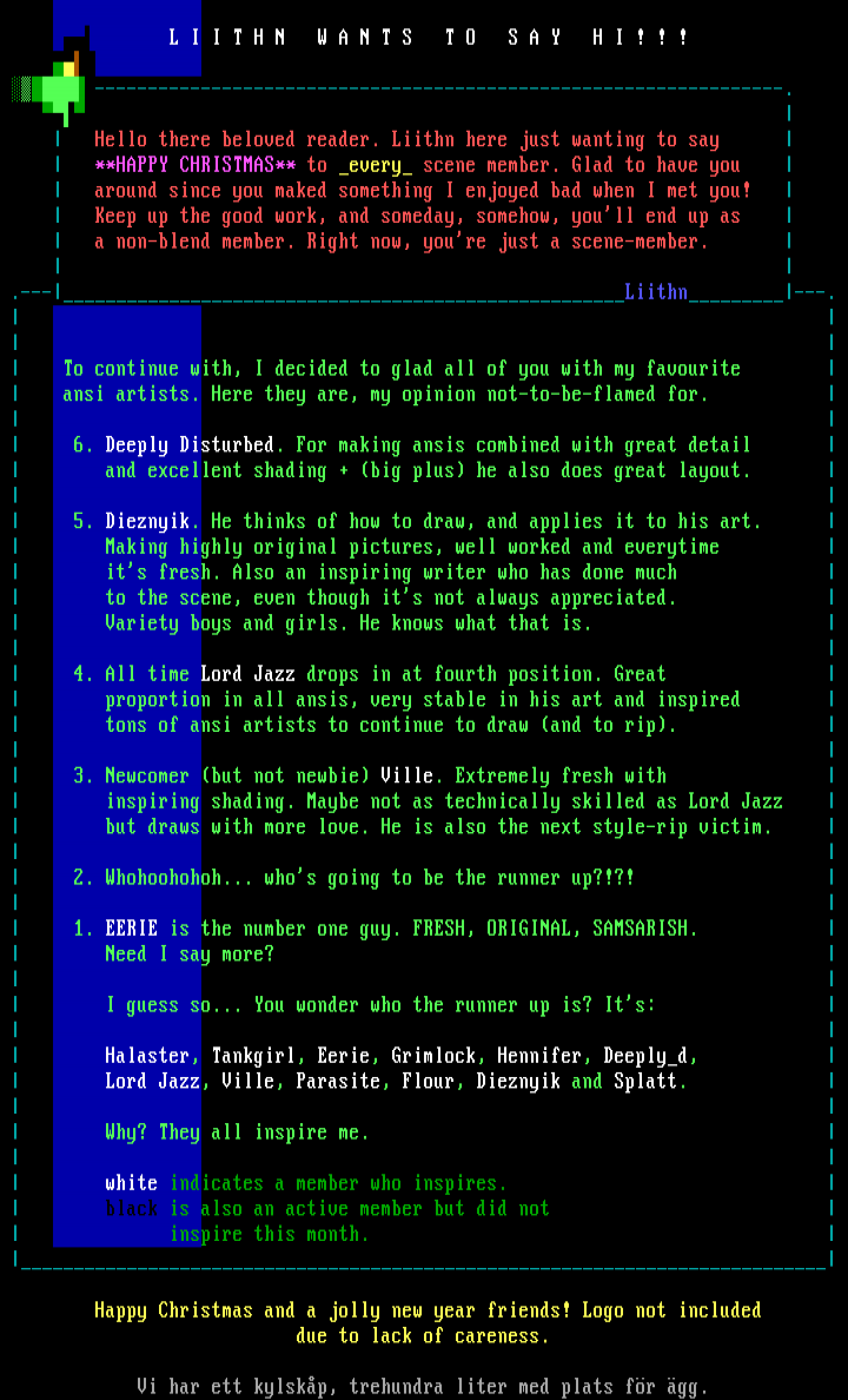 tons of ansi artists to continue to draw and to rip.