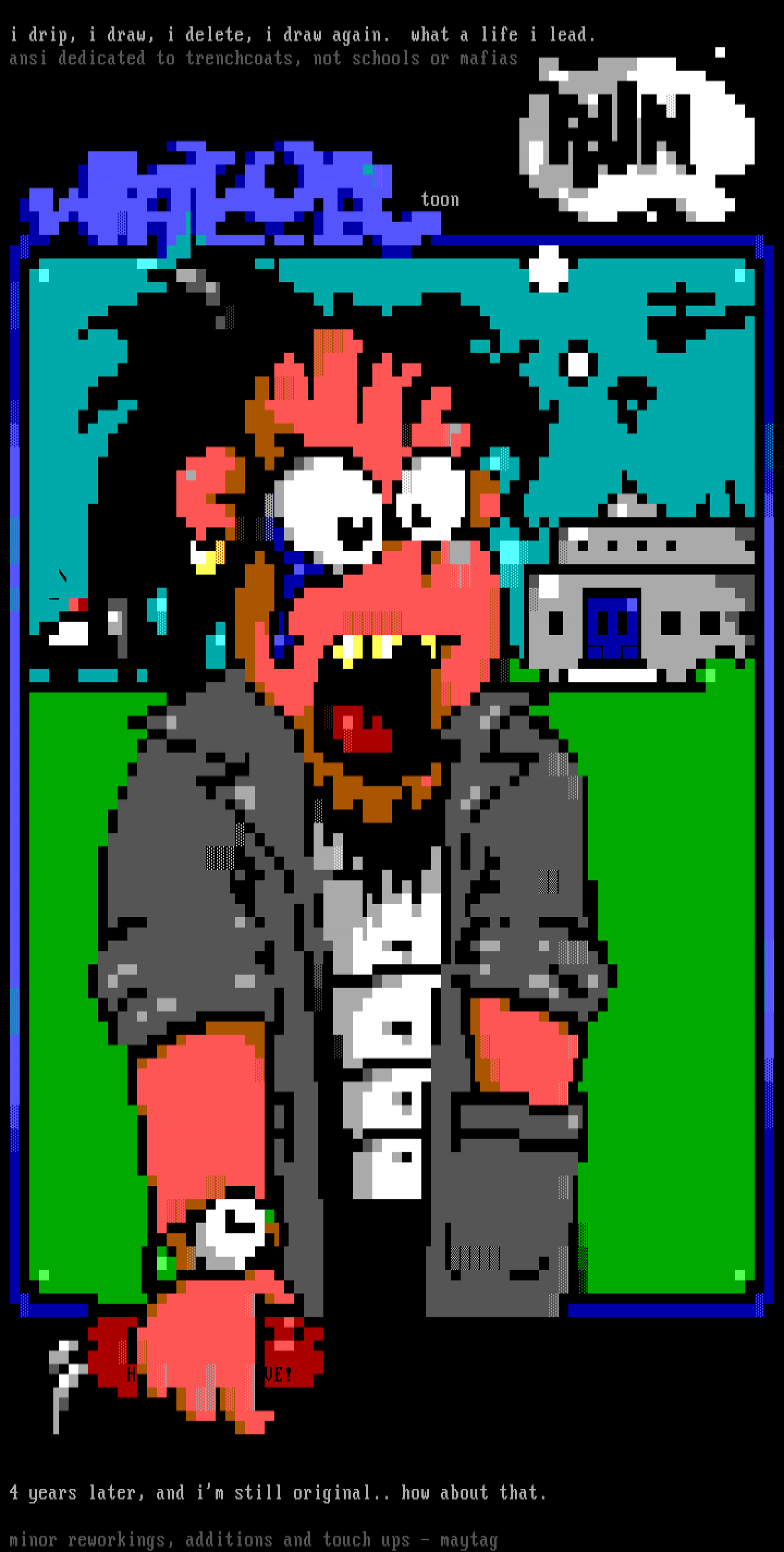 ansi dedicated to trenchcoats, not schools or mafias