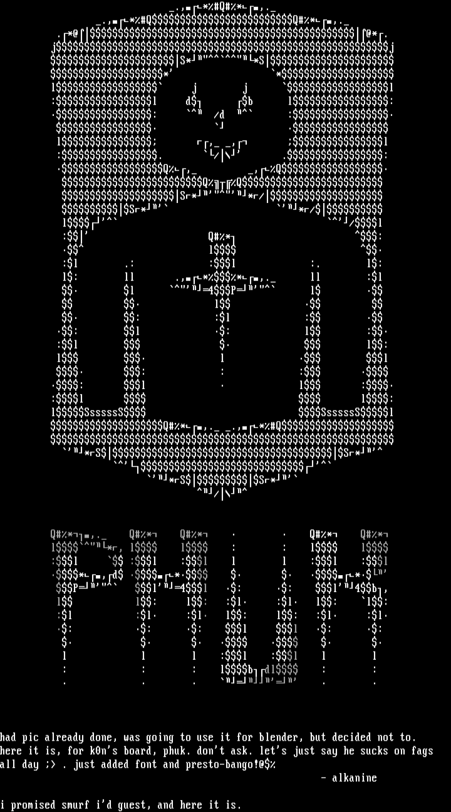 here it is, for k0ns board, phuk. dont ask. lets just say he sucks on fags