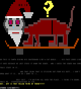 OK THIS IS SANTA RIDING HIS SKATEBOARD LIKE A CAT WOULD.. .. HIS FACE LOOKS LIKE