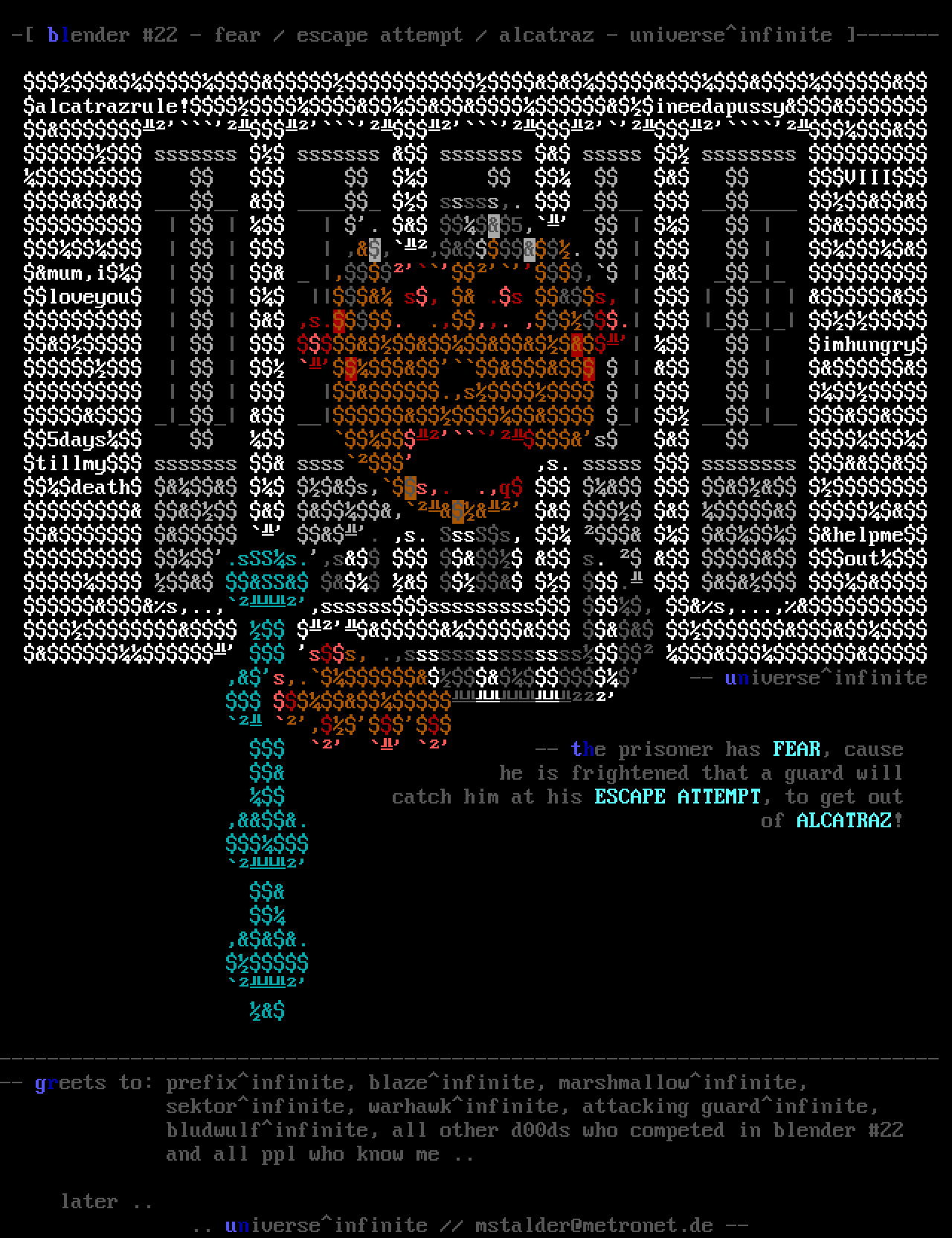 - blender 22 - fear / escape attempt / alcatraz - universeinfinite -------