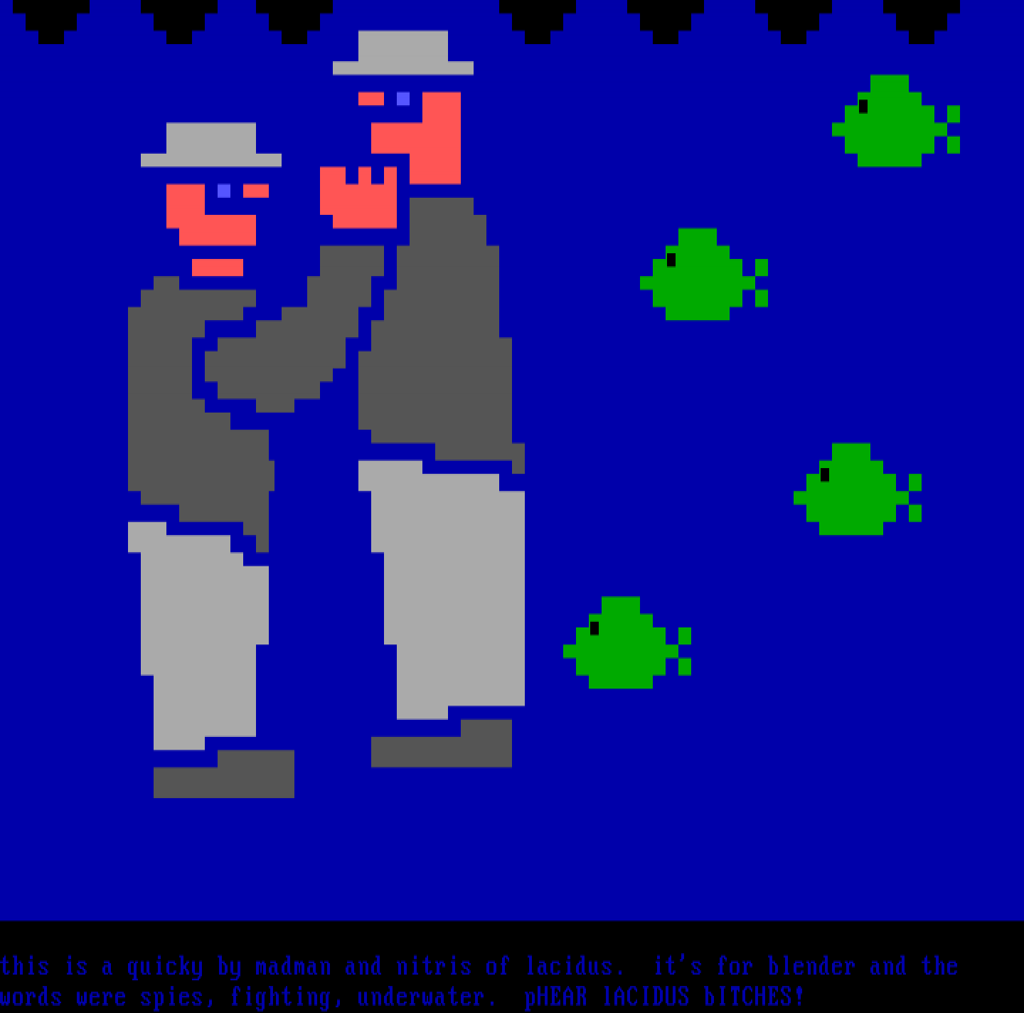 words were spies, fighting, underwater. pHEAR lACIDUS bITCHES!