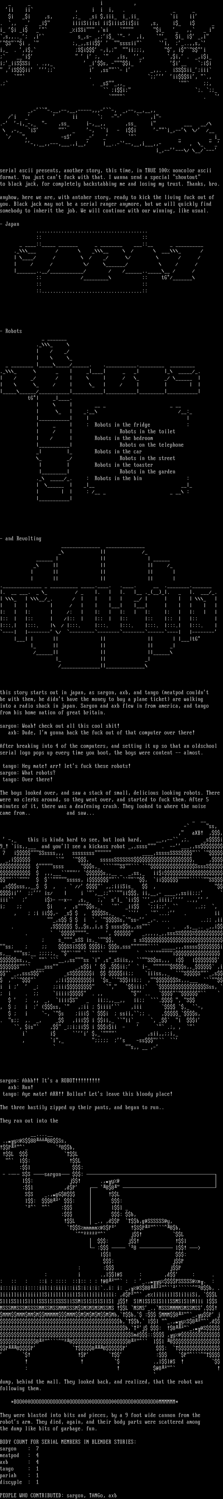 serial ascii presents, another story, this time, in TRUE 100 noncolor ascii